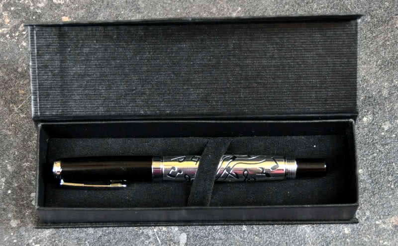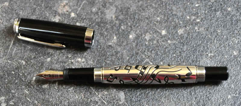 Füllfederhalter "Notenband" Chrom, mit Schraubkappe Länge ca. 13cm geschlossen Stiftlänge ca. 12cm