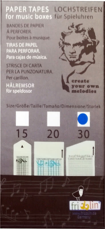 Produktinformationen "Papierstreifen für Spieluhr mit Resonanzkörper für eigene Kompositionen 30 Töne"