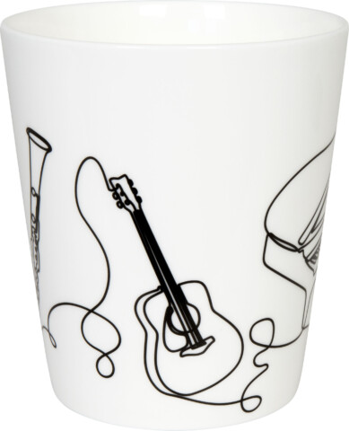 Der Polyphony Becher zeigt eine Reihe von Instrumenten, die harmonisch miteinander in Verbindung stehen. Das Design ist mit seinen schwarzen Linien sehr elegant. Ein tolles Geschenk für Musiker und Liebhaber.