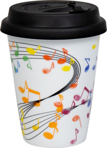 Coffee-To-Go Mug aus hochwertigem Porzellan. Inkl. Deckel (Silikon). Motiv Flying Notes. Spülmaschinengeeignet.