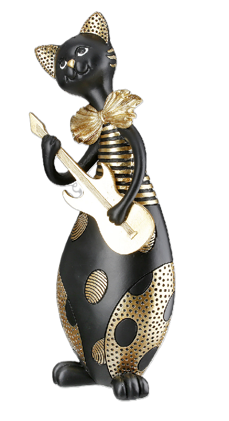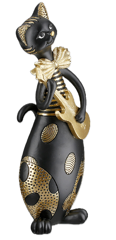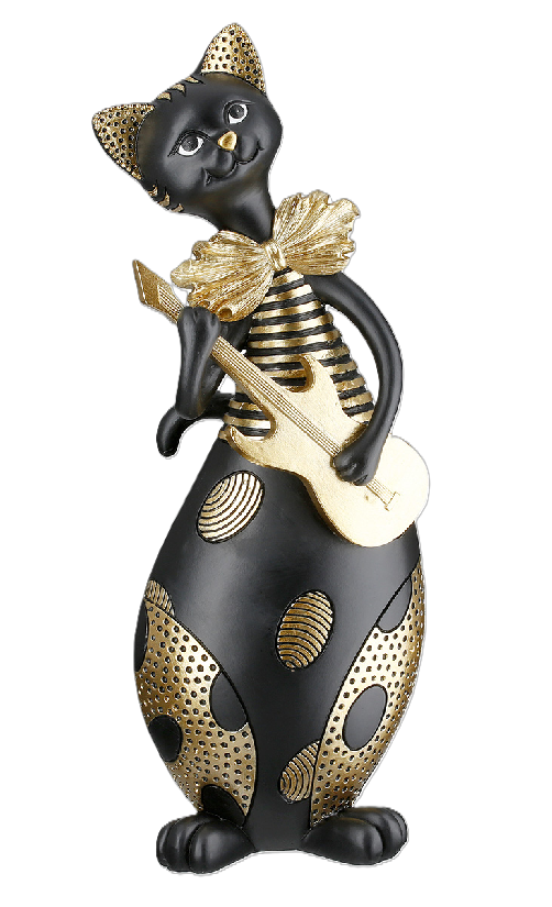 Kapella hält eine elegante Gitarre in den Pfoten und verleiht Wohnzimmer, Büro oder Schlafzimmer einen Hauch von Rock-Chic.