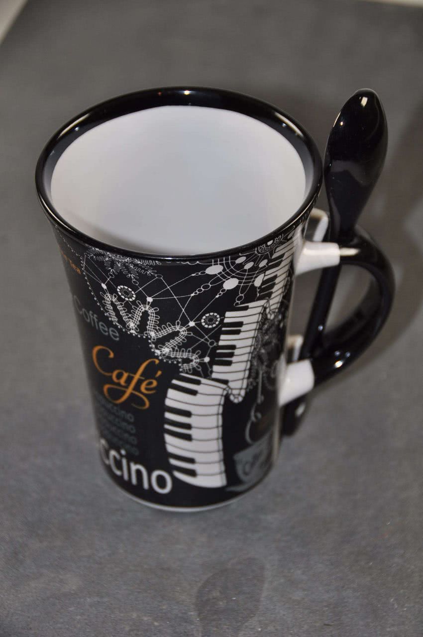 Der Keramikbecher "Piano Wave" ist in vier verschiedenen Farben erhältlich (rot, weiß, schwarz und grau) und kommt zusammen mit passendem Keramiklöffel. Dieser kann durch den Griff gesteckt werden und ist somit immer bei der Tasse. Diese Tasse sollte bei keinem Musiker fehlen!