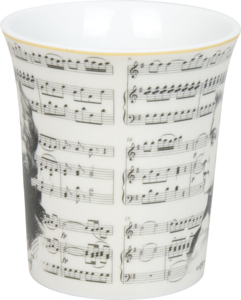 Dieser besondere Becher ehrt Wolfgang Amadeus Mozart, den großen Komponisten der Wiener Klassik.